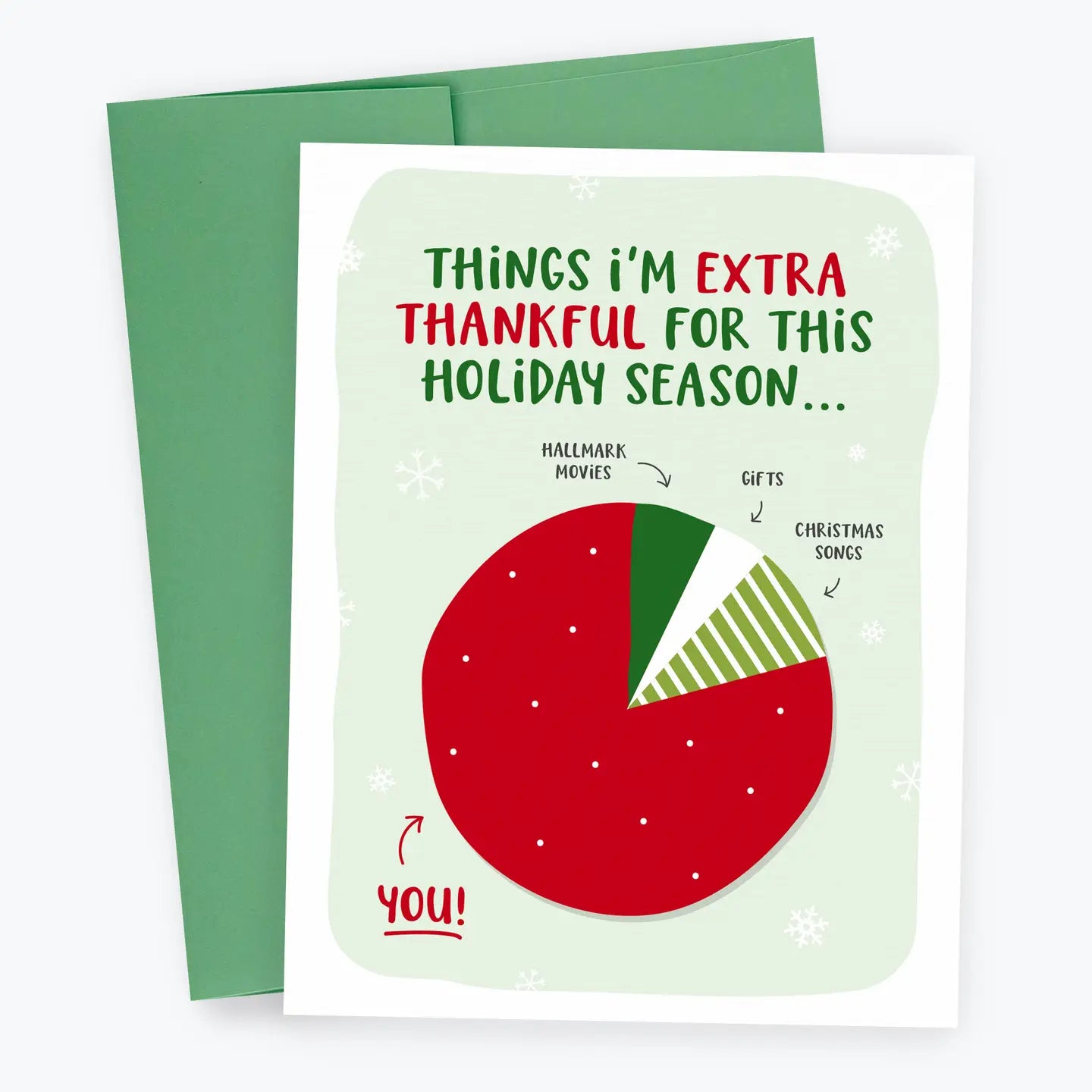 Introducing the perfect holiday card for family or friends: a festive design featuring a pie chart of things you're grateful for. This delightful card captures the essence of Christmas traditions (new and old), spreading joy and gratitude to your loved ones.