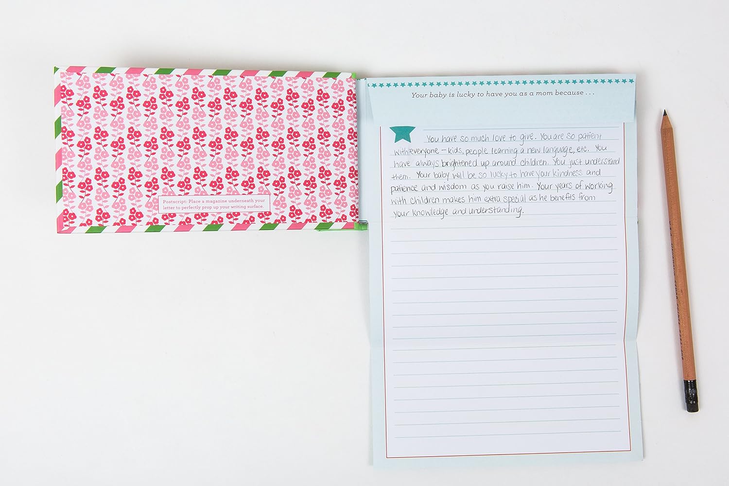 Write Now. Read Later. Treasure Forever.Letters to the New Mom will inspire you to celebrate her with advice, encouragement, and good cheer. Sign the letters, seal them with the enclosed stickers, and off the completed book to the new mom. She'll treasure your words well after her baby is all grown up!Each letter is printed with a unique prompt like: I wish for you and your family...Remember, you can always count on me for...My brightest hope for your baby it...Included are 12 letters that will inspire a lifetime of love, advice, and support from the new mom's trusted loved ones. She will be an amazing mother and this time capsule will keep reminding her of it! Fill out Letters to the New Mom yourself or invite 12 people to write one letter each. It's a great baby shower activity and gift!Each letter has a space to write when it was sealed and when it should be opened (will it be tomorrow or in 20 years?). Seal letters with the included stickers before giving this time capsule to the amazing new mom!