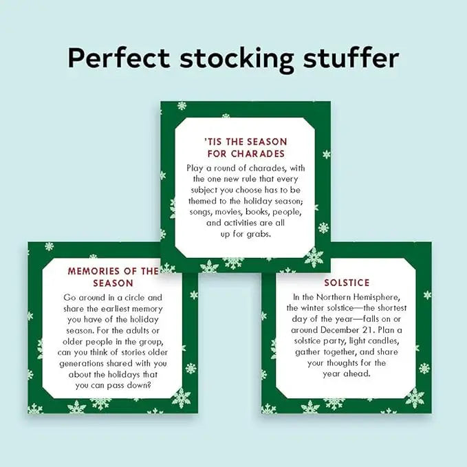 ‘Tis the season to gather with loved ones to create memories and start new family traditions. These cards offer 50 wintry ways to while away the hours together—from playing classic parlor games to sharing dreams and hopes for the year to come. You’ll also learn about some holiday and religious traditions from around the world.