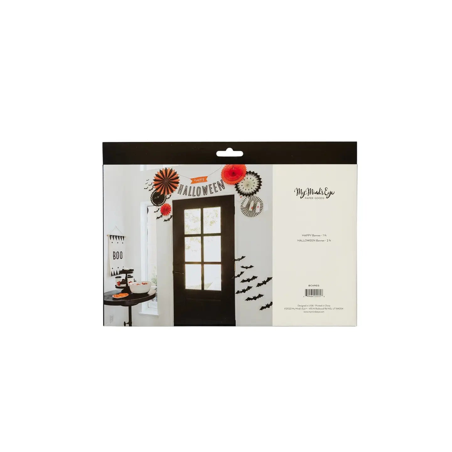 Wish ghosts and witches alike a happy Halloween with this two piece word banner! Creating a bewitching scene is a snap when you hang this banner at you Halloween party or use it as the centerpiece for a mantel or porch display.