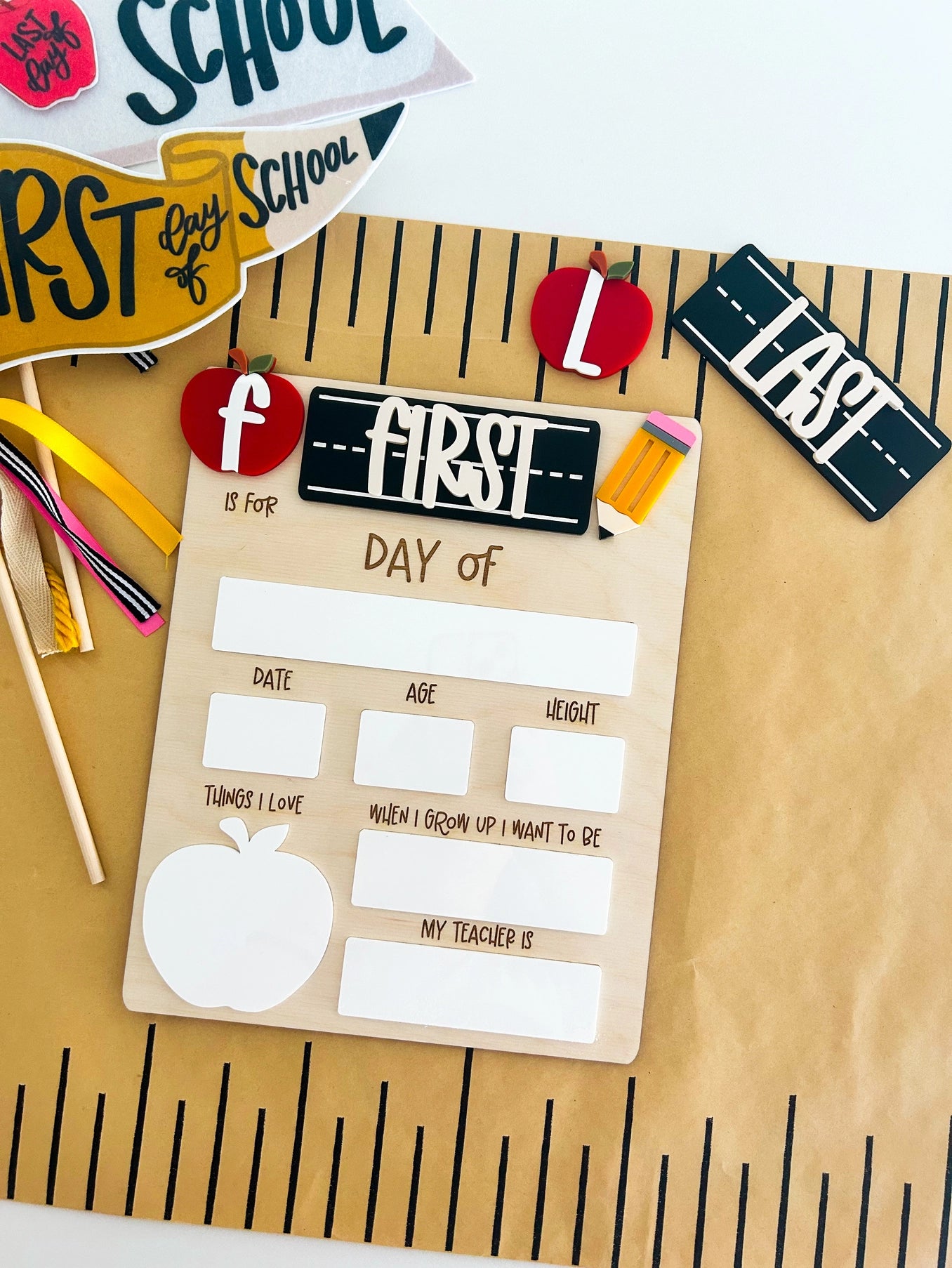 The perfect sign for Back to School Photos. Comes with interchangeable apple and chalkboard first and last day pieces. First and Last day options attached with a magnet for easy use year after year.