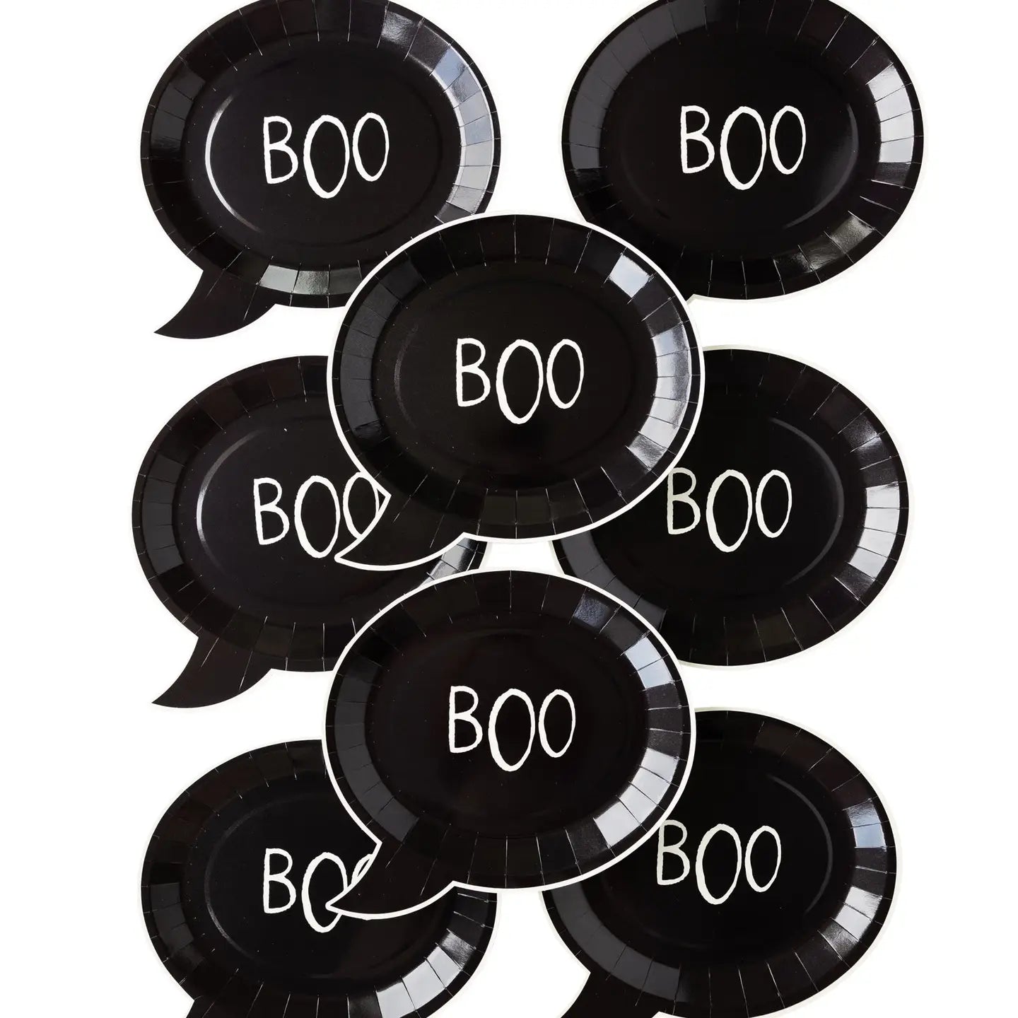 Delight ghost and goblins alike with these shaped boo party plates! Featuring the spook sentiment "BOO," these paper plates make a spooky addition to the table at any Halloween gathering. And be sure to add extra frightful fun at your gatherings by pairing these boo paper plates with our ekk shaped napkins.