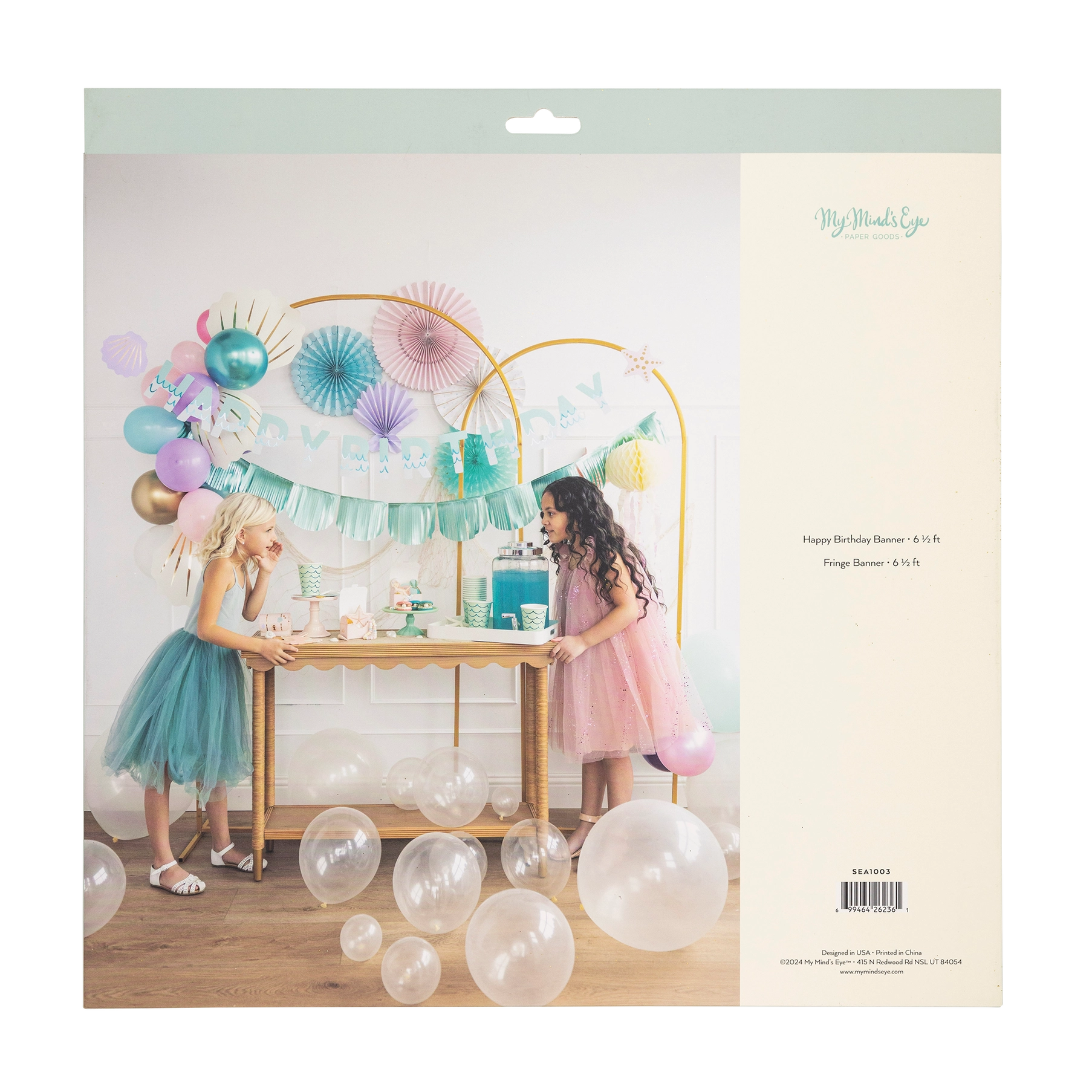 Add an ocean-inspired touch to your next birthday celebration with our Happy Birthday Banner Set! This under the sea banner set features a festive "Happy Birthday" message and includes a fun mylar fringe banner. Get ready to party in style with this unique and playful banner set!