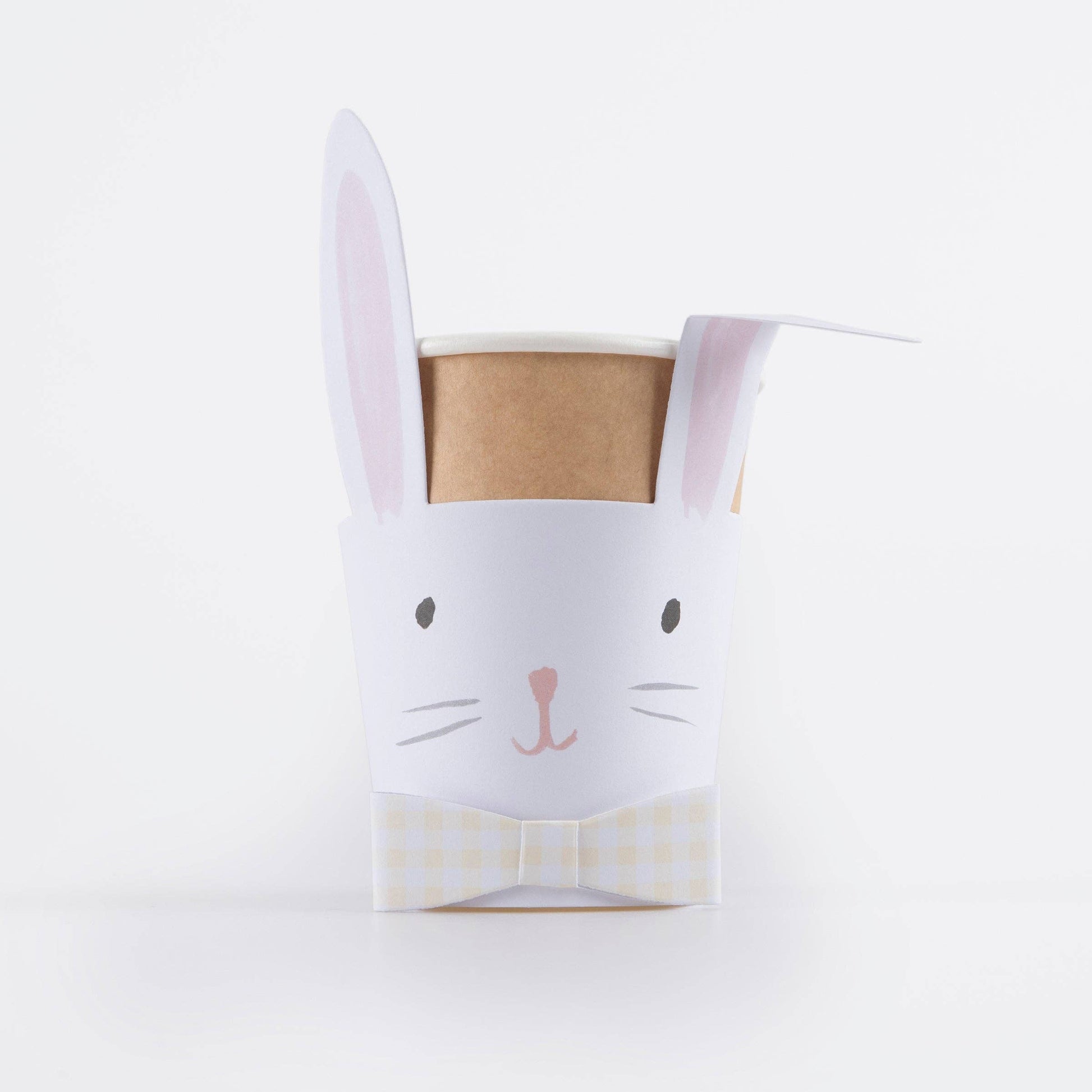 * Kraft cups with bunny wraps featuring gingham bowties