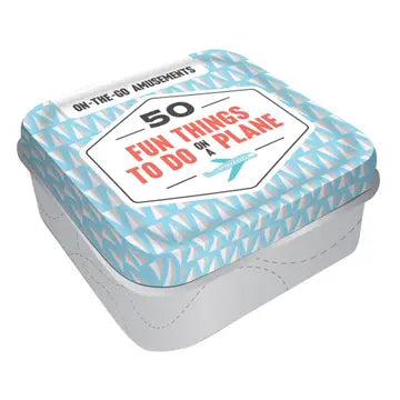 Looking for screen-free activities for airplane travel? Look no further than this cute, compact tin filled with 50 great ideas for family fun up in the air!