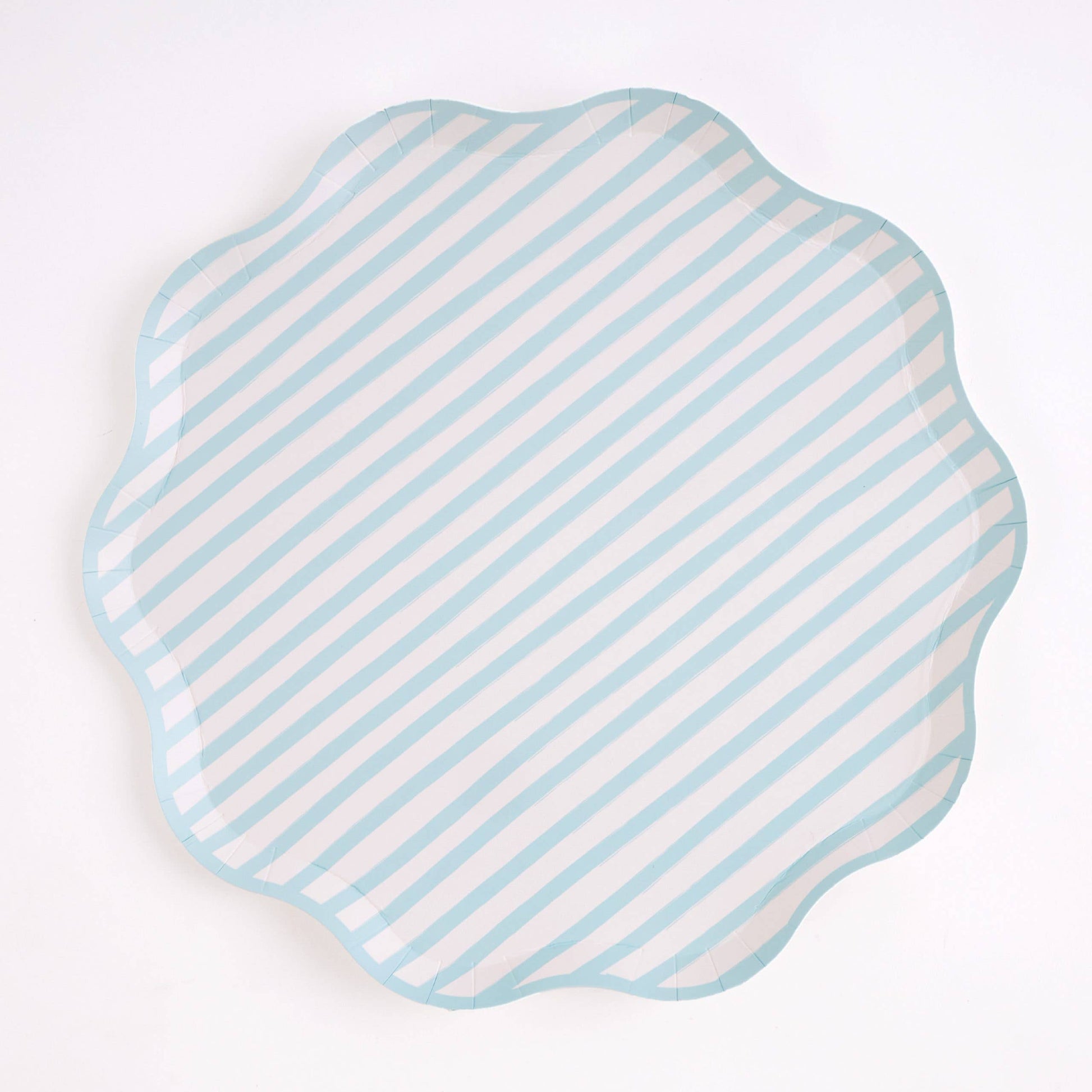 Elevate your table with these 10" Teal and White Stripe Large Plates, featuring a soft wavy edge and smooth matte finish for a refined yet playful look. Their versatile striped design pairs beautifully with our Fairy Garden Collection, adding a fresh pop of color to whimsical, nature-inspired tablescapes.