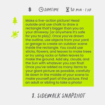 Whether they’re building a house made out of snacks, making special gifts to give to friends, or playing “Nature Bingo,” your kids will want to do these adventures over and over again!
