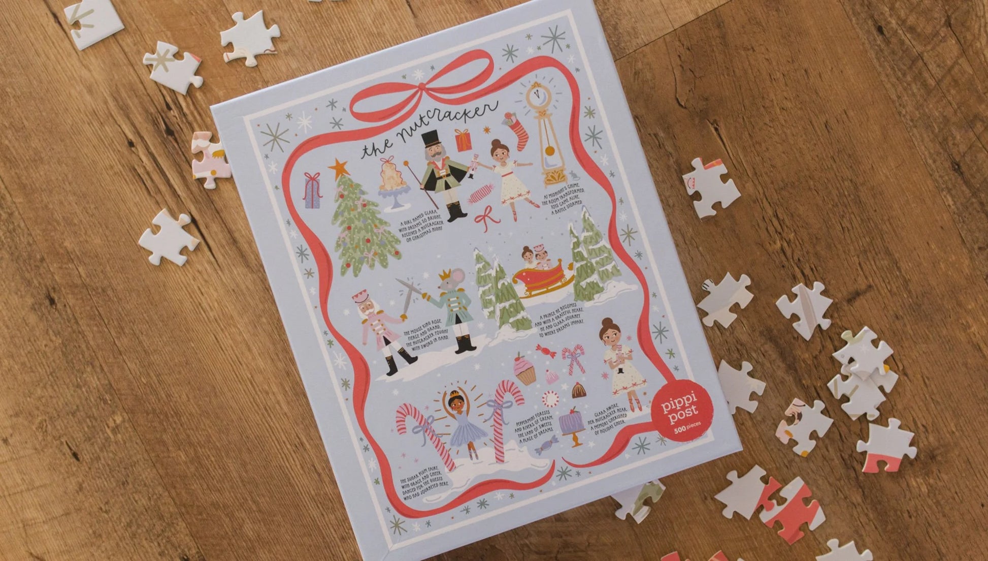 Celebrate the magic of The Nutcracker with this 500-piece jigsaw puzzle, bringing the beloved ballet to life! Follow Clara’s enchanting Christmas Eve adventure, from receiving the Nutcracker soldier to the battle with the Mouse King, the Land of Sweets, and the Sugar Plum Fairy’s grand dance. With festive holiday colors, candy canes, twinkling snowflakes, and charming hand-drawn details, this puzzle is the perfect way to unwrap the joy of the season!