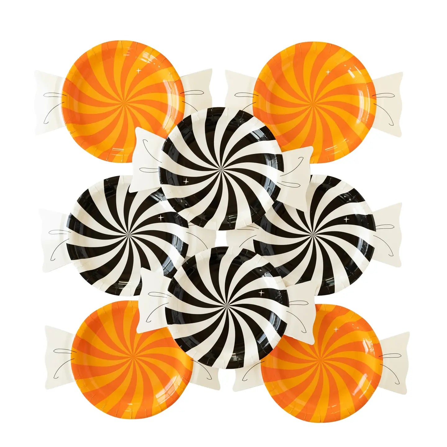 Spooky sweets and ghoulish goodies will look at absolutely spellbinding on these candy shaped plates. These sweet black and orange candy plates will look fa-boo-lous at any Halloween gathering!
